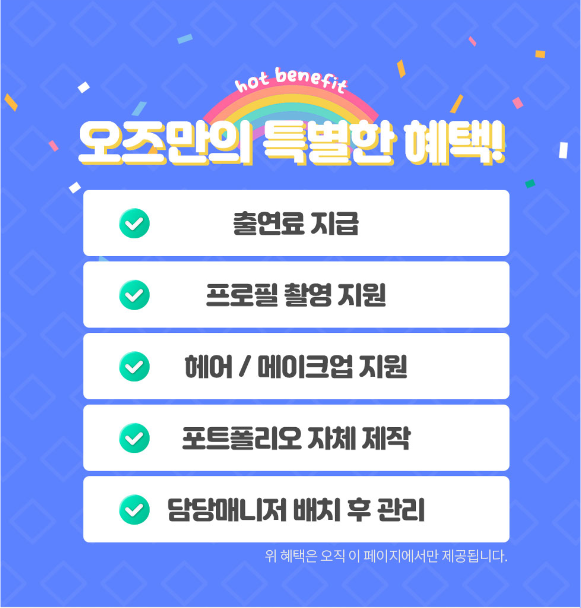 ✅ 드라마, 영화, 광고, 모델 등 다양한 활동 기회 제공