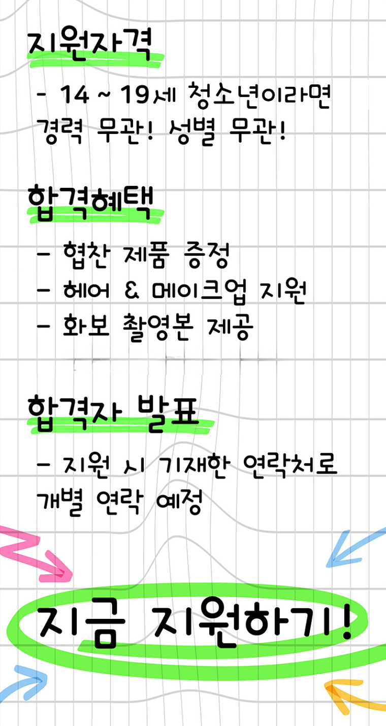 모델을 꿈꾸는 청소년이라면, 누구나! (경력,성별 무관)